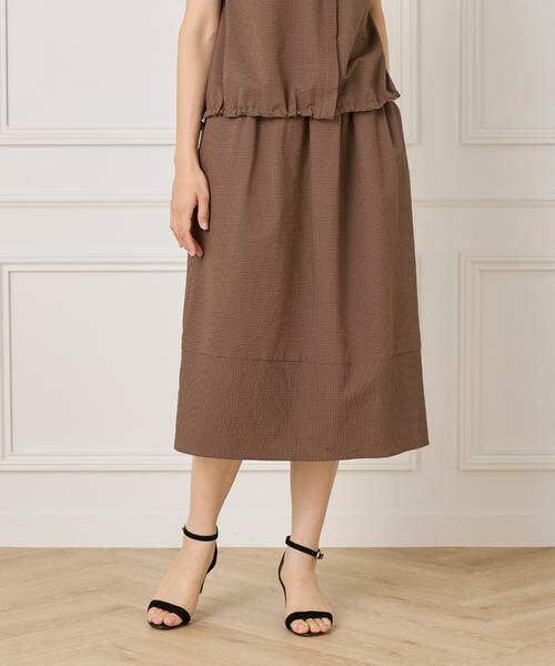表情のあるサッカー素材を使用した、軽やかで涼しげな印象のスカート。裾に切り替えを施すことで、シルエットにさりげないアクセントをプラスしました。ランダムに入ったタックとギャザーが動きにニュアンスを加えつつ、広がりすぎないすっきりとしたストレートラインで大人らしい印象に。後ろウエストはゴム仕様で、快適なはき心地ときちんと感を両立。便利なスラッシュポケット付きで、デイリーに活躍するアイテムです。