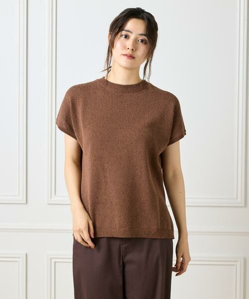 異なる2種類の糸をミックスして編み立てた、奥行きのある表情が魅力のニットトップス。柔らかな肌ざわりと軽やかな風合いで、着心地も快適です。二の腕をさりげなくカバーするフレンチスリーブに、前後差のあるヘムラインで動きにニュアンスをプラス。両脇にはスリットを施し、抜け感のあるこなれた印象に仕上げました。シンプルながらもディテールにこだわった、大人のデイリースタイルにぴったりの一枚です。