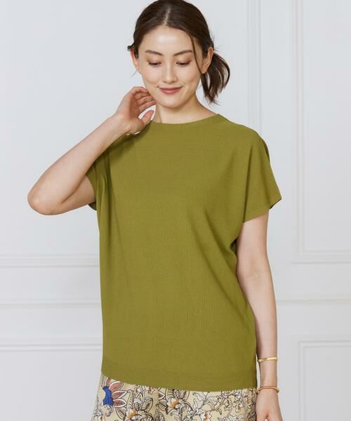かのこ編みの凹凸感が表情豊かな一枚。二の腕を自然にカバーする安心丈のお袖と、ほどよくコンパクトなウエスト周りで、アウトでもインでもすっきりと着こなせます。身頃から続くボトルネックは、高すぎない衿丈で初秋のまだ暑さが残る時期にも快適。秋らしさを感じさせるカラー展開と、シンプルで汎用性の高いデザインで、幅広いスタイリングに活躍します。
