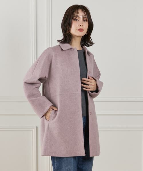 上品で女性らしい印象のステンカラーコート。飽きのこないデザインを上質な素材感で上品に仕上げました。