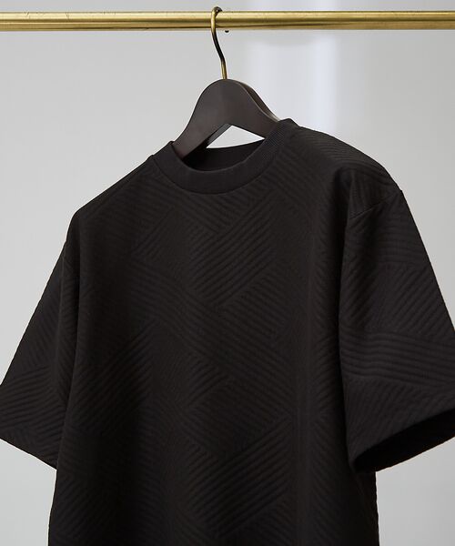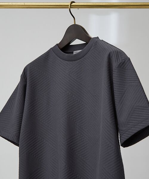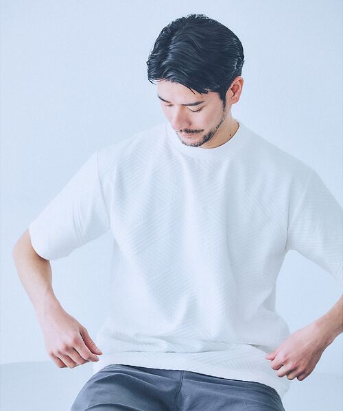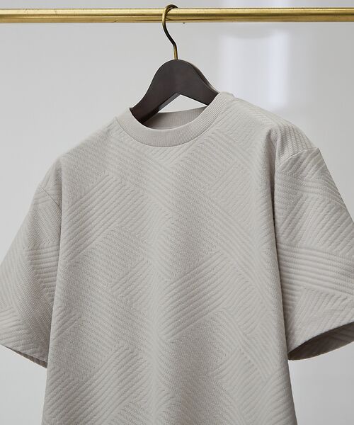 生地に凹凸を出してジオメトリック柄を表現したクルーネックTシャツ。 一枚で着ても様になり、ジャケットのインナーとしても着回しやすい すっきりとしたシルエットに仕上げました。
