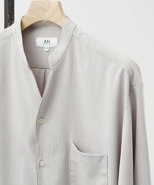 【素材】微光沢の生地に細かな凹凸があり、シンプルながらも上品な雰囲気のシャツ。ストレッチも効いているのでストレスフリーで着用いただけます。【デザイン】AH ABAHOUSE人気のキーネックシャツから25SSの新作が登場。リラックスシルエットながら上品な素材でカジュアルになり過ぎず使いまわしの効く一枚です。【コーディネート】スラックスなどのモード合わせからラフにカジュアル合わせまで幅広い着こなしが可能。JKやカーディガンなどのインナーとしてもキーネックデザインがポイントとなりおすすめです。【AH ABAHOUSE】手ごろな価格でトレンドアイテムを発信するABAHOUSE GRAYのインライン。モードスタイルをベースに遊び心と自由な発想を取り入れ、”今”の気分を味わいながら日々のファッションを楽しみ、日常に溶け込むスタイルを提案いたします。