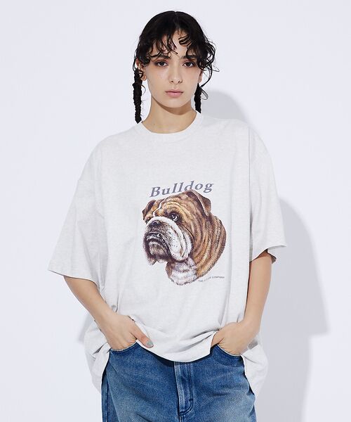 Lee DUNGAREESのアイコン、ブルドッグを大胆にプリントしたTシャツ。