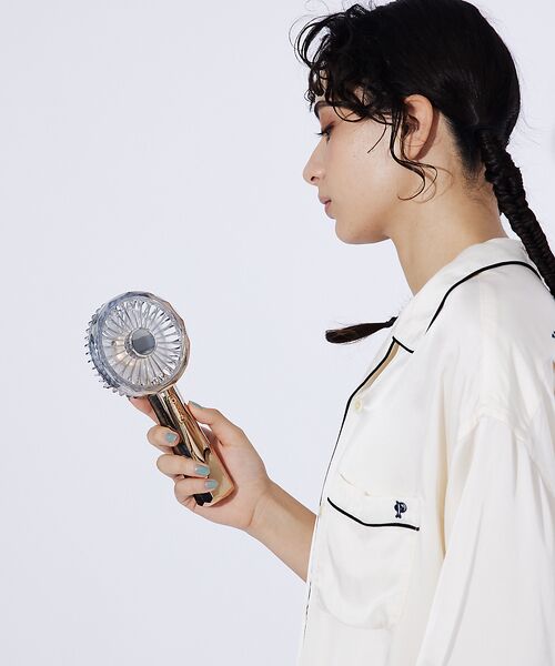 「リュミエール with Toffy LEDハンディファン」は、ひときわ異彩を放つ抑揚のある曲線とクリスタルカットを組み合わせたデザインは、ハーフミラーを通した光(リュミエール)の効果をより一層引き立たせます。