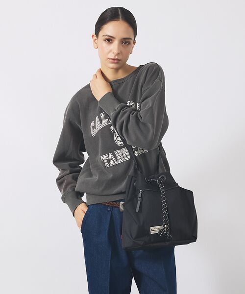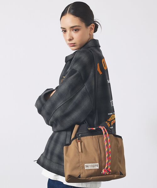 メインコンバートメントを8㎜ロープで開閉するデザインハンドバッグ。
