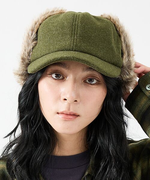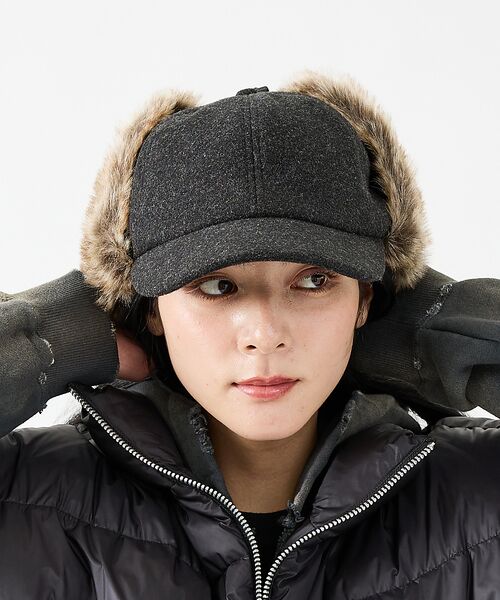ウール調生地×ボア耳付きキャップは、秋冬シーズンにぴったりのカジュアルアイテムです。