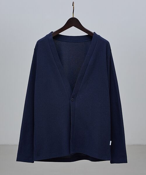 ボタンをかけても、はずしてもサマになる一つ掛けボタンカーディガン。 ワンボタンで着流せるよう最適なバランス、シルエットに仕上げました。 程よいゆとりを確保したリラックスシルエットで、品のあるすっきりとした印象にまとまります。