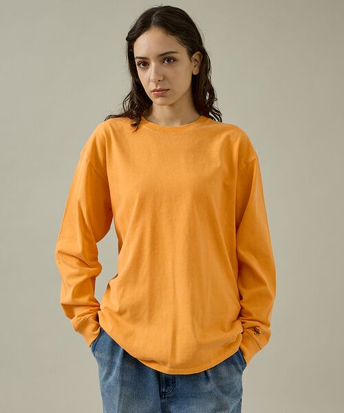 カラーバリエーション豊富な無地ロングスリーブTで、ピグメント(顔料)染め加工で古着テイストに仕上げた1枚です。