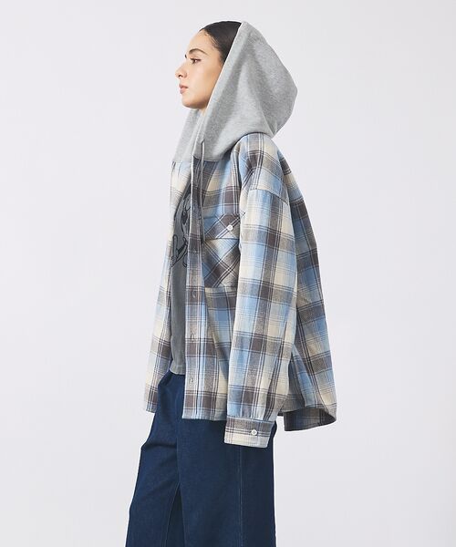 フード付きなのでシャツジャケットのように着用でき、サイドにポケットもあるので機能性にも優れています。