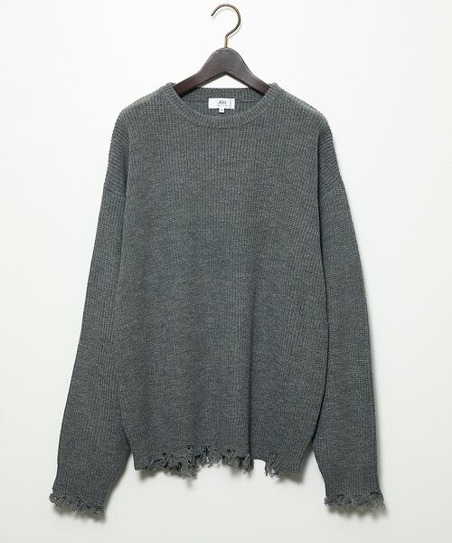裾や袖口にさりげないダメージ加工を施し、クリーンな印象の中に抜け感をプラスしたプルオーバーニット。