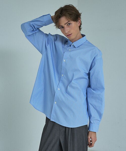 ドレスシャツのように上品な衿デザインで、きちんと感のあるシャツ。