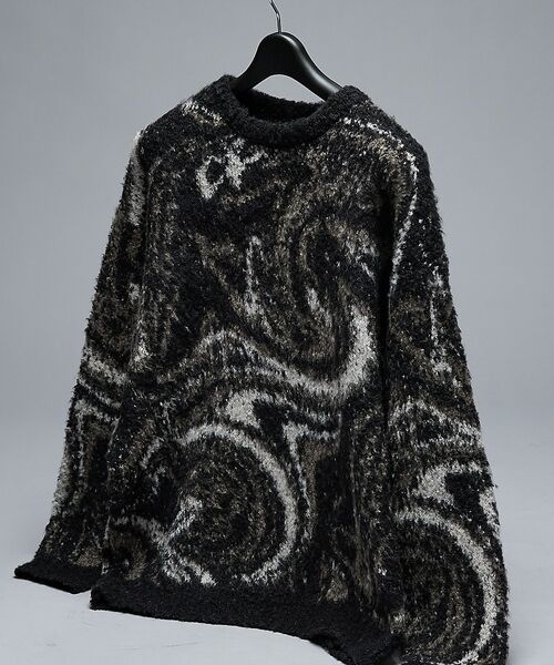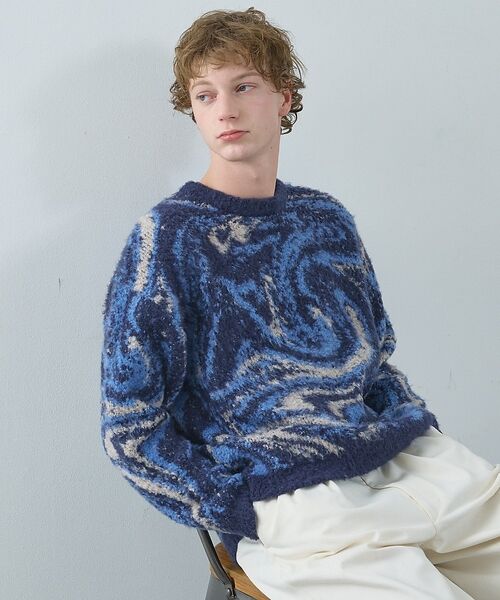 オリジナルのマーブル柄が目を惹くプルオーバーニット。