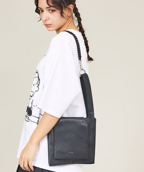 編み込みショルダーが、シンプルな造形にエッジをプラス