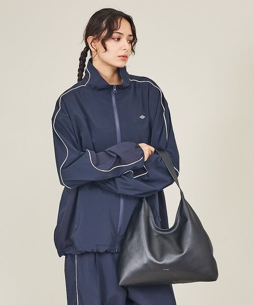 斜め掛けにしてトップスをタックインしたキレのあるスタイルにも対応。余白を活かした余裕のある着こなしがモード感を高めます。