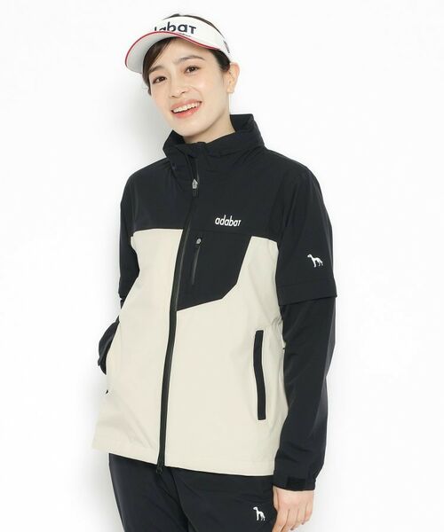 白と黒のツートンカラーが洗練された印象を与えるレインブルゾン。