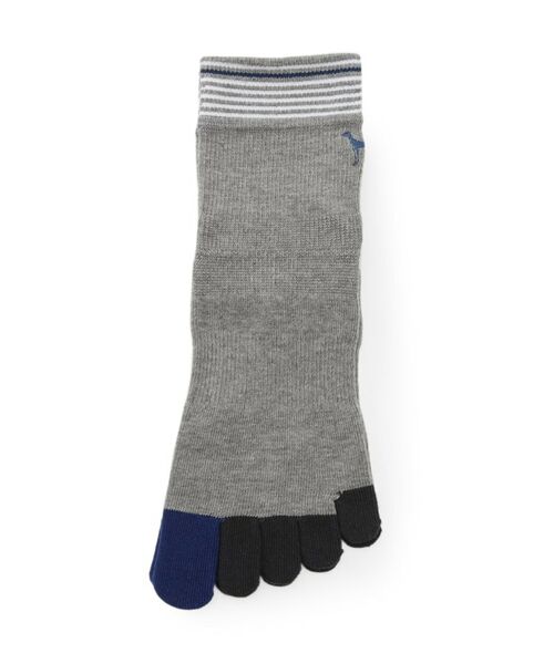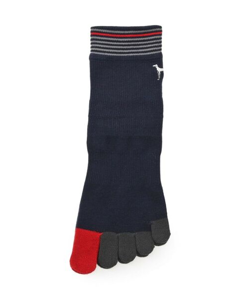 シンプルな無地デザインにトリコロールカラーがアクセントを加えた、5本指のショートソックスです。
