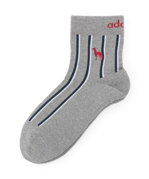 配色が効いたクラブストライプ柄が印象的なショートソックス。