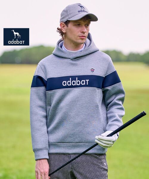 【新レーベル ADABAT NAVY】ブロッキングラインロゴフーディー