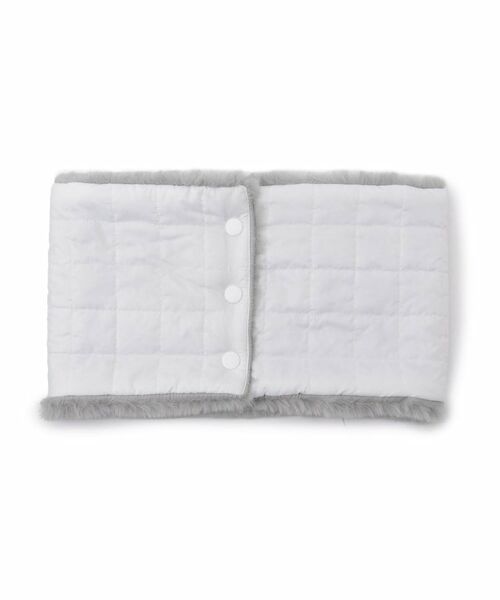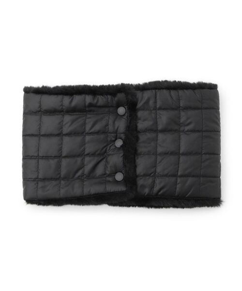 このネックウォーマーには、光沢感のあるタフタ素材と上品さのあるファーフリースが使用されています。