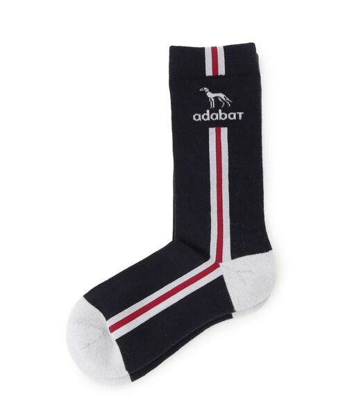 サルーキロゴとストライプデザインが新鮮な印象を与える、トラッドな定番レギュラーソックス。