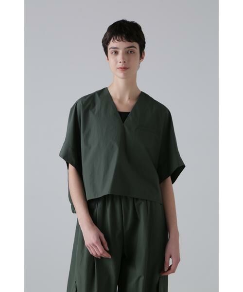 軽い素材でレイヤーコーディネートもしやすい丈感のブラウスです。