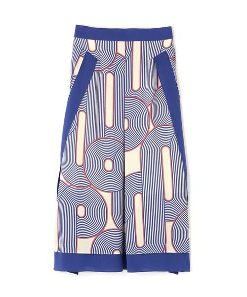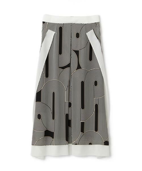 ミッドセンチュリーな幾何柄プリントが目を引くスカートミッドセンチュリーな幾何柄プリントを無地でフレーミングしたスカートです。四角いパーツで全体のシルエットを作成し、スカーフを縫い合わせたような洗練されたフォルムに。非常に薄く軽い梨地素材にモチーフをプリントした素材で仕立てました。*薄い梨地の為、引っ掛かりにご注意ください。※この商品は、ブラック / ブルー の2色展開となります。【商品特性】透け感:ややあり裏地:あり 伸縮性:なし 生地の厚さ:普通 フィット感:普通おすすめ着用期間:春夏秋おすすめ着用シーン:お出かけ透け感/なし|裏地/あり|光沢/なし|生地の厚さ/普通|伸縮性/ややあり|シルエット/スタンダード