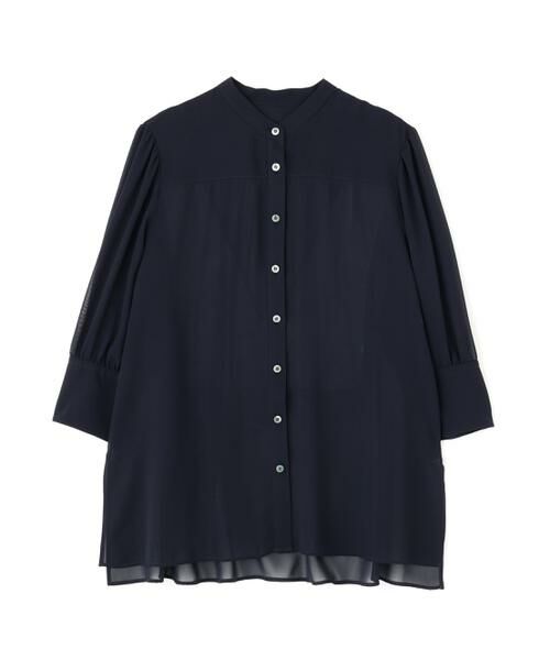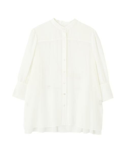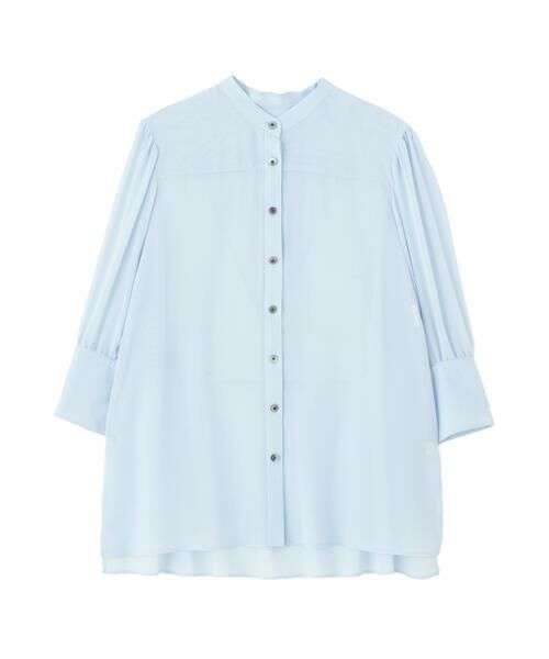 バンドカラーとク部分7分袖で、万能に使えるブラウスです。