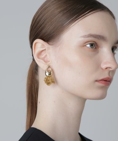 フリンジ状のビーズが目を引く、ツブイヤリング彫刻を彷彿させる有機的なフォルムの粒パーツの下に、極小のビーズをフリンジ状にふんだんにつけたイヤリングです。※この商品は、シルバー / ゴールド の2色展開となります。【素材説明】真鍮鉄アクリル【商品特性】おすすめ着用期間:通年おすすめ着用シーン:万能