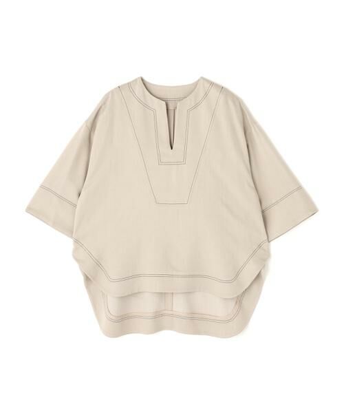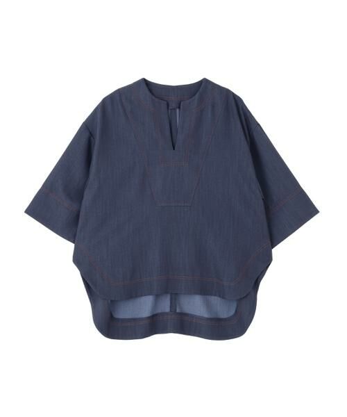 リラックスしたシルエットのチュニック風ブラウスデニム調の素材に配色のステッチがポイントです。前の着丈は短め、後ろ長めのデザインで、アウトで着用してもバランスのよい着丈です。同素材パンツ(品番:531-5230707)とのセットアップ着用もおすすめです。圣糸にドレープ感と表情のあるレーヨンスラブ糸を使用し、しなやかさと艶感が特徴なツイル素材で仕立てました。※この商品は、ベージュ / ネイビー の2色展開となります。【商品特性】透け感:なし裏地:なし 伸縮性:なし 生地の厚さ:普通 フィット感:普通おすすめ着用期間:春夏おすすめ着用シーン:お出かけ透け感/なし|裏地/なし|光沢/なし|生地の厚さ/普通|伸縮性/なし|シルエット/ビッグ