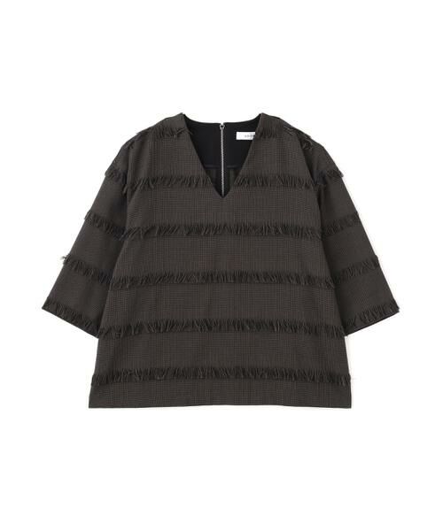 特殊なジャカード素材で仕立てたフリンジチェックブラウス