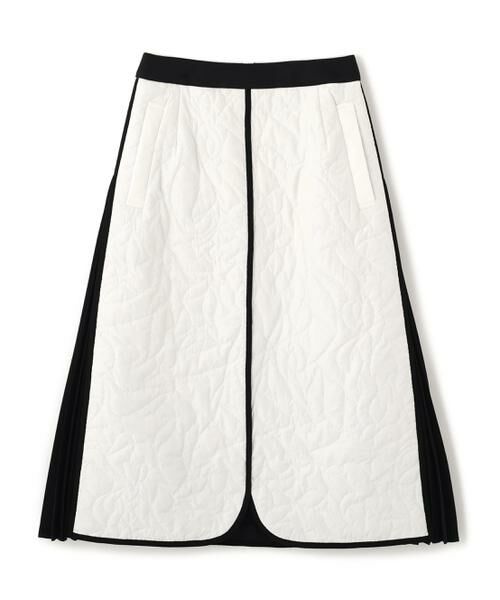 オリジナル柄のグラフィティキルティングスカートオリジナル柄をステッチで描いたキルティングのAラインスカート。サイドに別素材のプリーツが挟み込まれており、ヘムとセンターのグログランパイピングがアクセントの1着です。同素材ジャケット(品番:531-5250903)とのセットアップ着用もおすすめです。スッキリとクリアな表面感が特徴の、高密度ながらソフトなタフタ素材で仕立てました。※この商品は、ブラック / ホワイト の2色展開となります。【商品特性】透け感:なし裏地:あり伸縮性:なし生地の厚さ:普通フィット感:普通おすすめ着用期間:秋冬おすすめ着用シーン:休日透け感/なし|裏地/なし|光沢/なし|生地の厚さ/普通|伸縮性/なし|シルエット/スタンダード