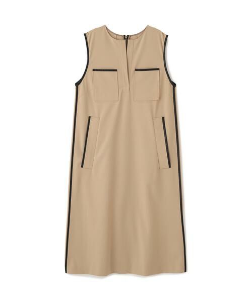 Aラインのシルエットで各所端に合皮のパイピングが施されています。