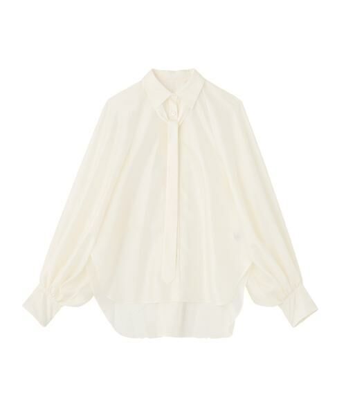 程よい光沢のシルクライクなオーガンジー素材でできたブラウス。