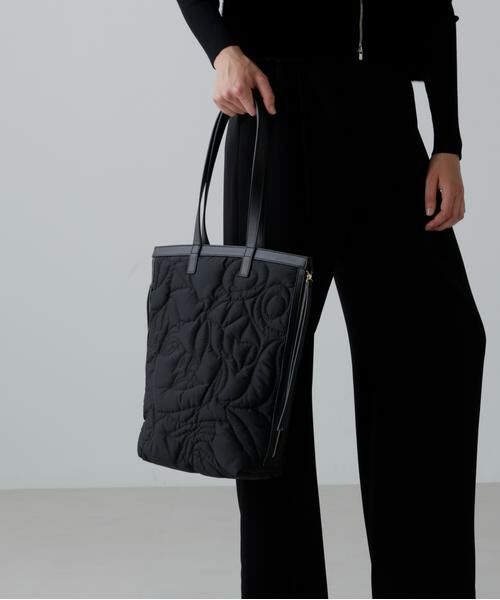 オリジナル柄のドローイングキルティングバッグオリジナル柄をステッチで描いたキルティングトート。サイドにファスナーが付いており、開けると合皮のマチがついています。荷物の量に合わせてバッグの容量を調節できる便利なデザインです。※この商品は、ブラック / ホワイト の2色展開となります。