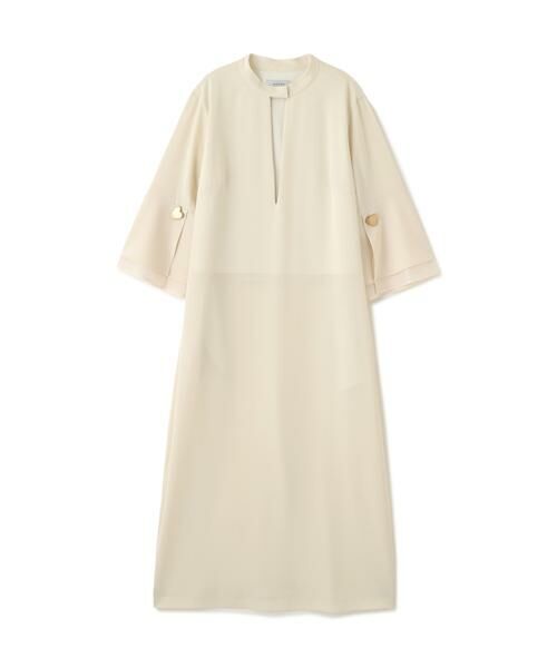 キーネックが大人っぽいシックアンドシンカチオンツイルワンピースすとんとしたアイラインシルエットと深く刻まれたキーネックが大人っぽいロングワンピースです。袖口はほんのりベルスリーブになっていてシアー素材とレイヤードされています。フェイクファーベスト(品番:531-5250905)の下にさらっとスタイリングしていただきたいワンピースです。畝がしっかりと立った、スッキリとした表面とストレッチ性が特徴なしなやかなツイル素材で仕立てました。※この商品は、エクリュ / ネイビー の2色展開となります。【商品特性】透け感:ややあり裏地:あり伸縮性:なし生地の厚さ:普通フィット感:普通おすすめ着用期間:秋冬おすすめ着用シーン:お出掛け透け感/なし|裏地/あり|光沢/なし|生地の厚さ/普通|伸縮性/ややあり|シルエット/スタンダード