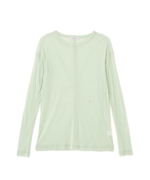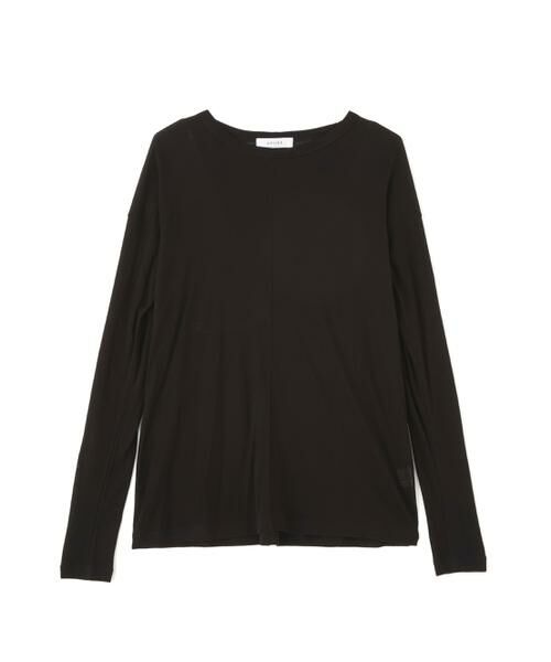 タッチが非常にソフトでなめらかな再生繊維(セルロース)にふくらみのあるウールを混紡させた、透け感のあるシアーなジャージ素材で仕立てました。
