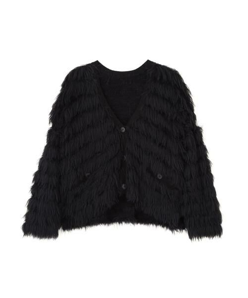 毛足の長いロングシャギーの糸を使用したニットカーディガンです。
