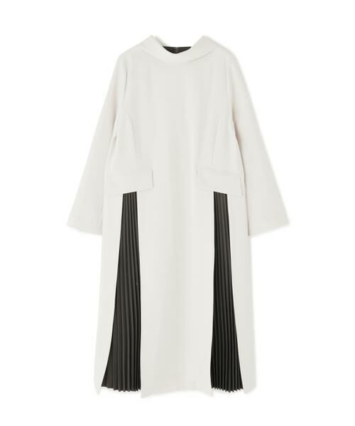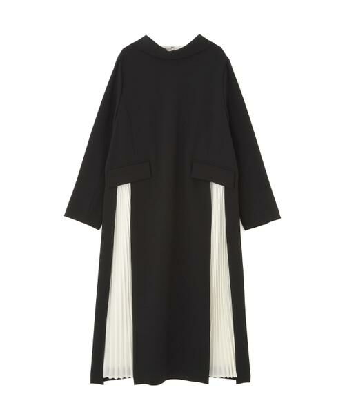 ショールカラーのジャケットを前後逆に着用したようなデザインのかっちりした印象のワンピース。