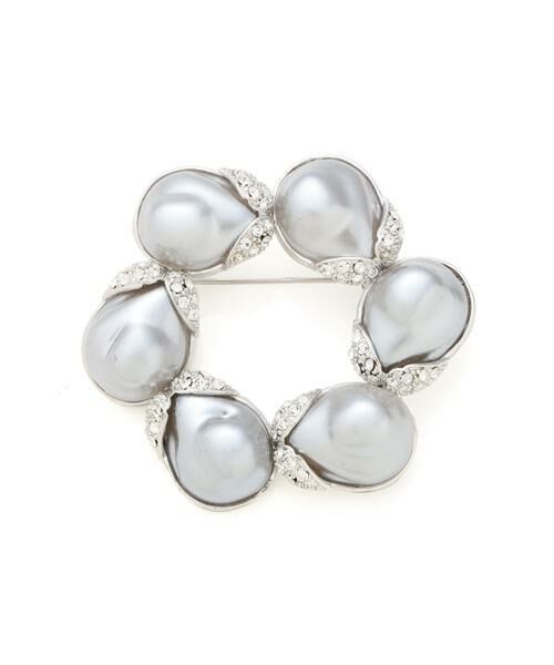 グレーカラーが洗練された印象のサークル型ブローチグレーのパールカラーのブローチ。ナチュラルな形状でまるで本物のバロックパールの様な見た目に仕上がっていますが、とても軽量なのでハイゲージニットにもつけられるブローチです。※この商品は、グレーのみ の1色展開となります。