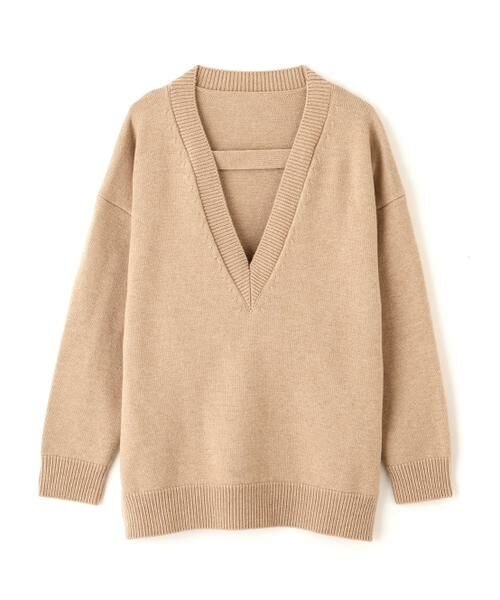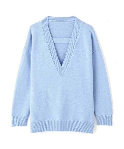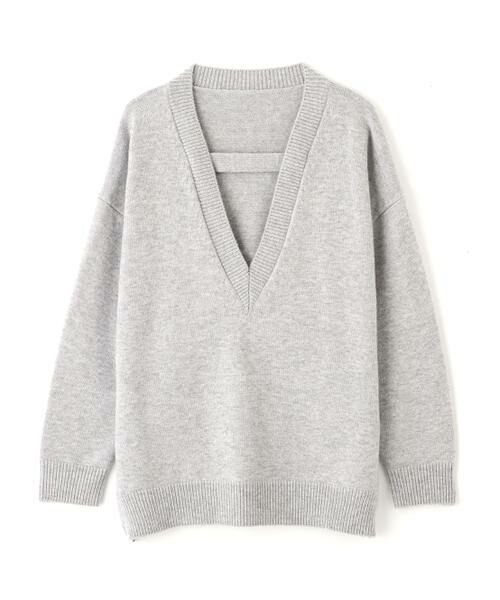 ネック後ろにテープが渡った、後ろに抜けるニットトップスです。