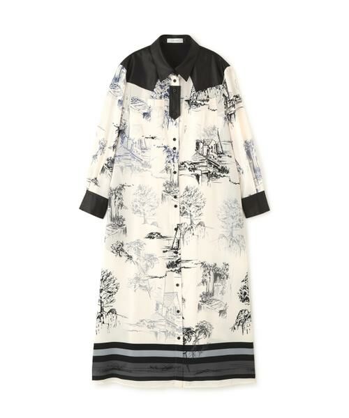 ・お届け予定日:1月下旬頃異素材使いが印象的なサウダージプリントドレスポリエステルの柔らかなパウダータッチのデシン素材とヴィンテージレザー調の素材を使用したドレスです。緩やかなAラインシルエットでカフス、後ろ身頃上、前身頃の上、衿がレザー調の別素材になっています。さらりとしたパウダータッチのデシン素材にモチーフをプリントした素材と、特殊な光沢加工を施しビンテージレザーの様な表情を持たせた素材を組み合わせました。※この商品は、ブラックのみ の1色展開となります。【商品特性】透け感:あり裏地:アンダードレス付き伸縮性:なし生地の厚さ:薄めフィット感:普通おすすめ着用期間:春秋冬おすすめ着用シーン:お出掛け透け感/ややあり|裏地/あり|光沢/なし|生地の厚さ/薄手|伸縮性/なし|シルエット/スタンダード