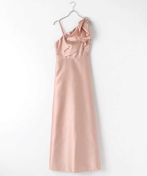 ハイロー裾の印象的なワンショルダーデザインのミカドサテンガウンドレスは、フォーマルな機会にぴったりなドレスです。 肩に弓のディテールと綺麗なシルエットを引き立たせるためのシャーリングがデザインされ、マーメイドスタイルのスカートは魅力的になること間違いなしでしょう。