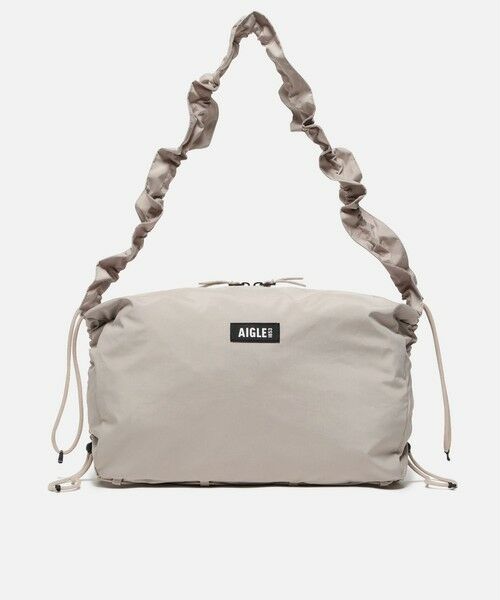 ・水筒や傘を収納できる、底部にストリングのアクセントがついたトレンドライクなショルダーバッグ
