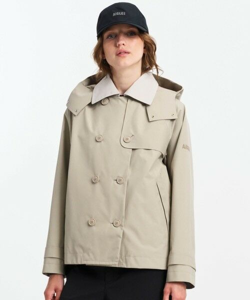 ゴアテックス2レイヤーのショートトレンチ コートです。モダンでエレガントなデザインと、防水・防風・透湿性を備えた高機能性素材を使用したエーグルのアイコニックなアイテム。どんな天候でも快適に過ごせ、幅広いスタイルにマッチします。2つのハンドポケットと1つの内側にジップ付き。・ゴアテックス2レイヤージャケット ・ ドローコードで調節可能な取り外し可能なフード ・ ハンドポケット2つ ・ ダブルブレストボタンクロージャー ・ バックルで調節可能な袖口ベルト ・ 右後ろ袖口にAIGLE ニューバードの刺繍 ・ 内側にジッパー付きポケット1つ ・ 袖にAIGLEのシグネチャー刺繍 ・ 収納袋付き