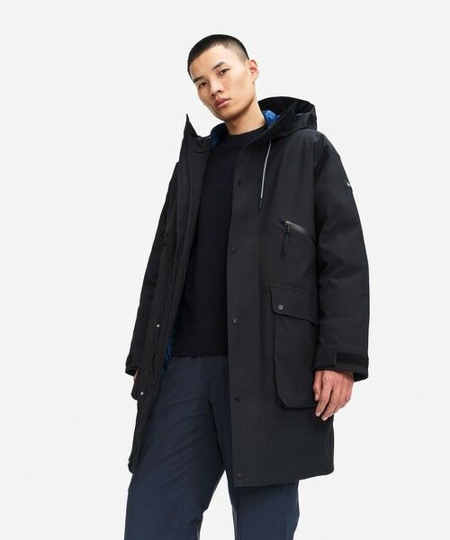 このロングフード付き MTD パーカーは、快適性、実用性、暖かさを兼ね備えています。パッド、ハンドウォーマーポケット 2 つと胸ポケット 2 つを含む 4 つの外部ポケット、ダブルスナップ留め、リサイクル素材でできたインサレーションが特徴です。