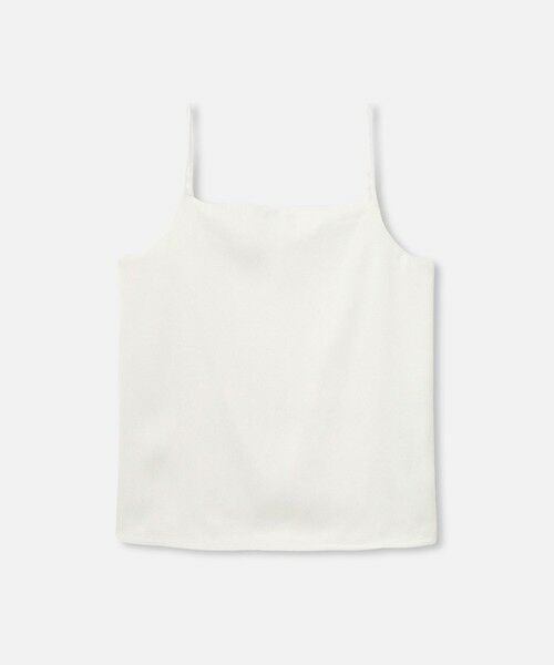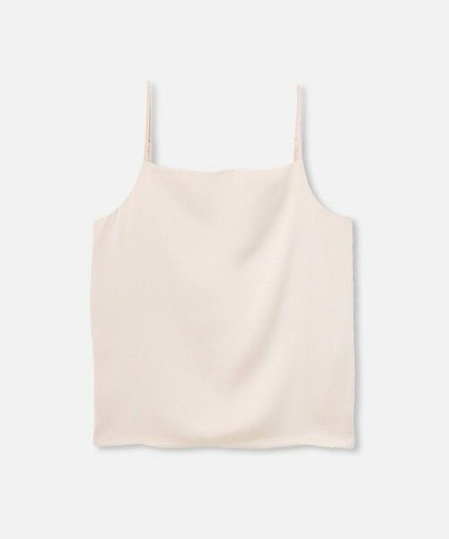 細めのストラップがデコルテや肩回りを華奢に見せてくれ、女性らしさを感じるキャミソール。