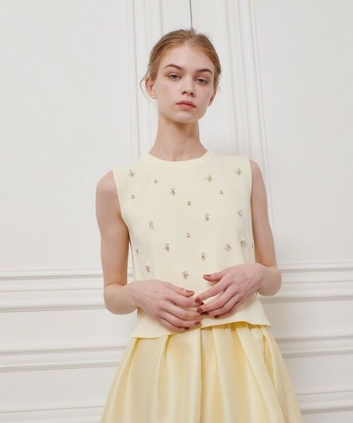 前面に細やかなビーズとラインストーンを組み合わせたビジューをポンポンとランダムに並べたプルオーバーです。