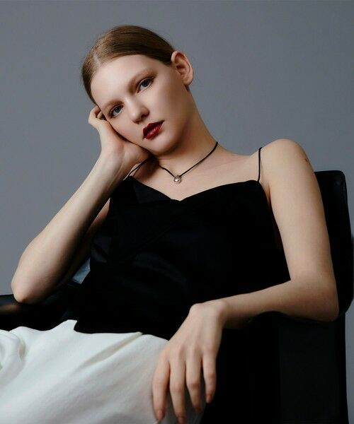程よい肉感があり、柔らかな光沢素材なので、アシンメトリーなデザインにすることで、上品な特別感ある1枚に。