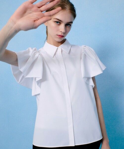 トレンドのバルーンデティールのお袖がポイントのシャツブラウス。