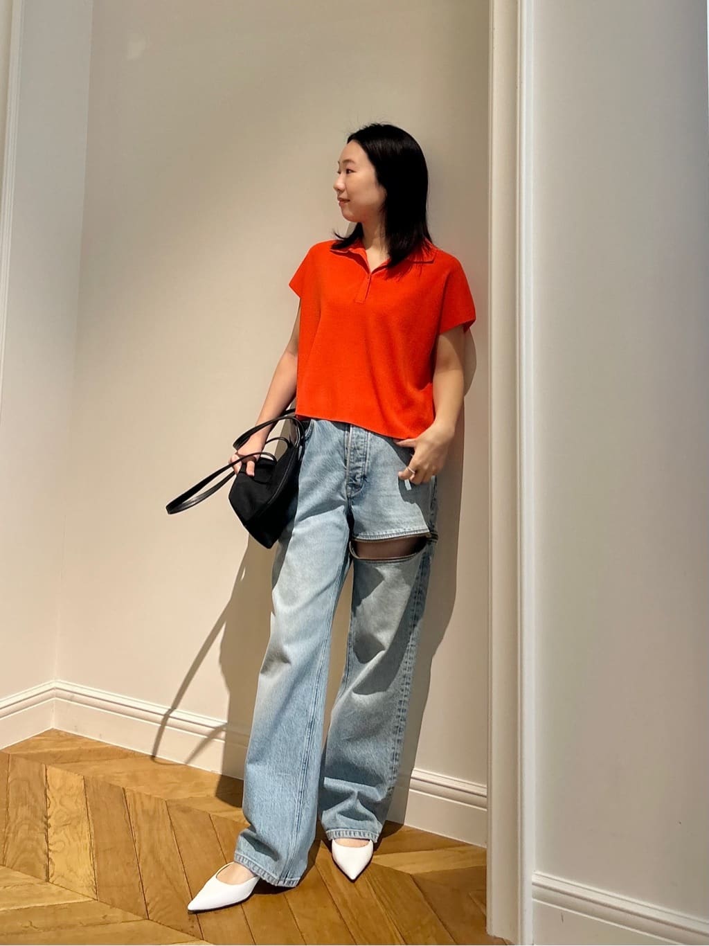 ○サマーラガーシャツ 着用サイズ / 2(フリー) カラーによってラインの入り方が異なるニットポロ。 コンパクトな丈感でどんなボトムスを合わせても ウエスト位置を高く見せ、スタイルアップに。 インせずさらっと着るだけでおしゃれに決まる嬉しい丈感です。 肩周りをカバーしてくれる優秀なアームレットデザイン。 お洗濯しても毛玉になりにくく長持ちの生地です。 伸縮性もありとても着やすく、 少しゆとりのあるサイズ感でノンストレスな着心地です。 厚過ぎず薄過ぎずの丁度良い肉感のある生地で、 透け感はありません。 ワイドパンツやフレアスカートなど ボリューム感のあるアイテムとの相性抜群です。 ご自宅でお手入れ可能です。 スタッフ身長 159㎝